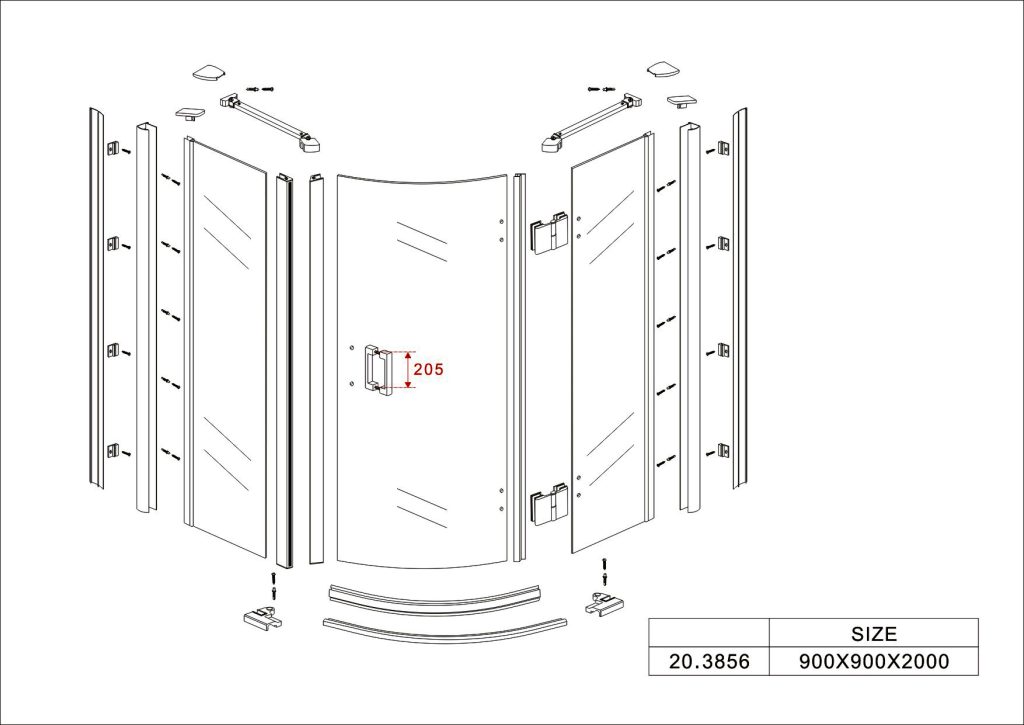 Wiesbaden Sphere douchecabine kwartrond rechts scharnierend 90x90x200cm chroom