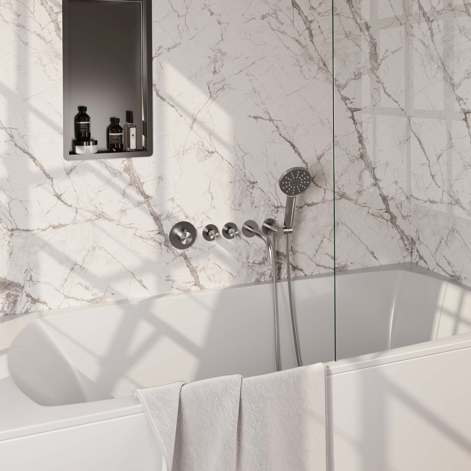 BRAUER Brushed Edition thermostatische inbouw badkraan SET 02 met uitloop en 3-standen handdouche en doucheslang en wandaansluitbocht RVS geborsteld PVD