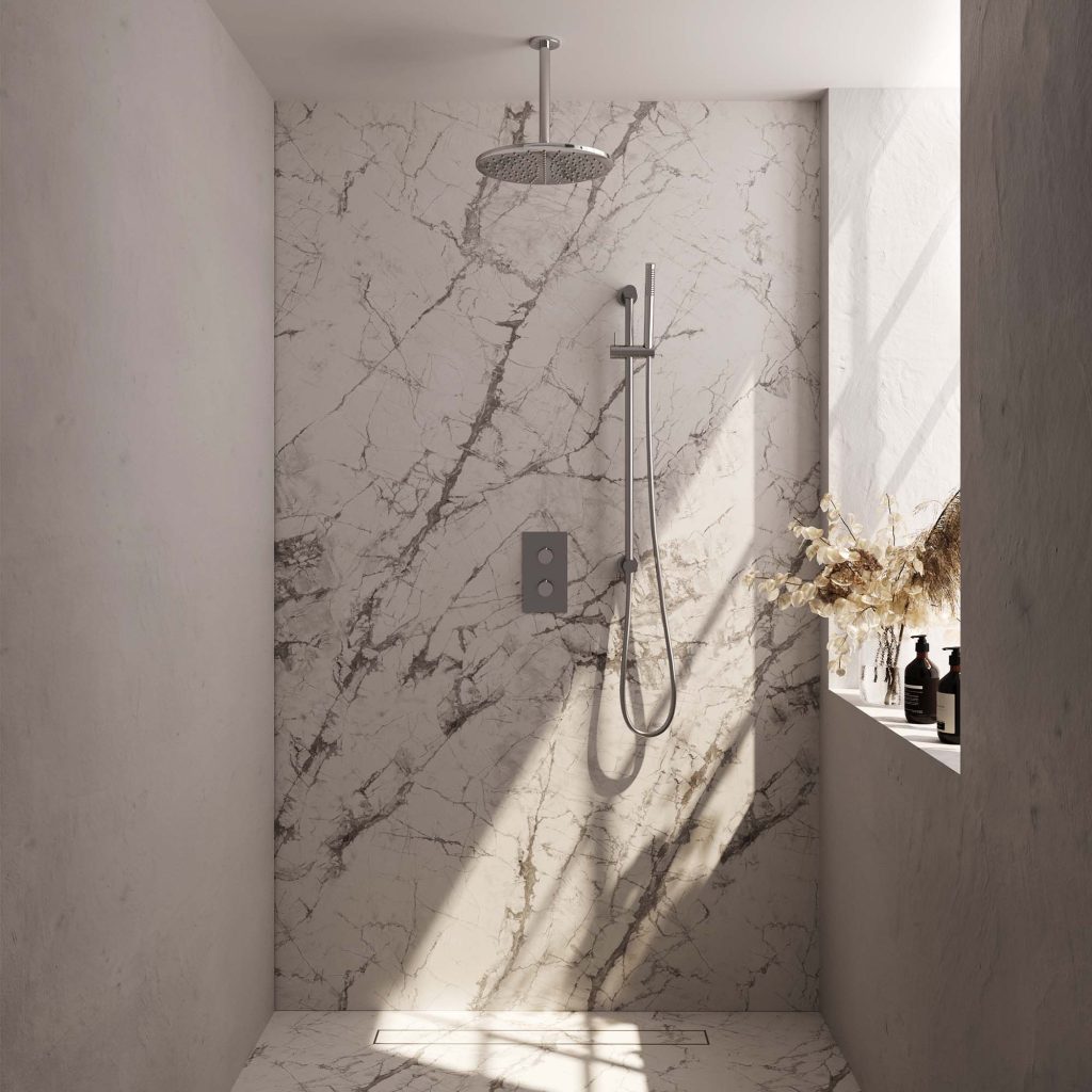 BRAUER Chrome Carving thermostatische inbouw regendouche 3-weg omstelling SET 42 met 30 cm douchekop en plafondarm en staaf handdouche en doucheslang en geïntegreerde glijstang chroom