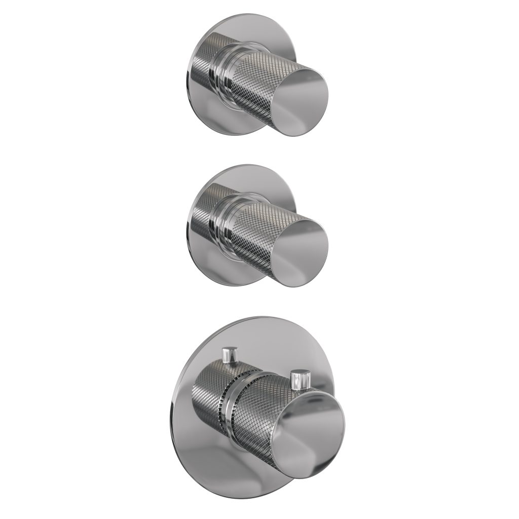 BRAUER Chrome Carving thermostatische inbouw regendouche SET 21 met 20 cm douchekop en gebogen muurarm en 3-standen handdouche en doucheslang en geïntegreerde glijstang chroom