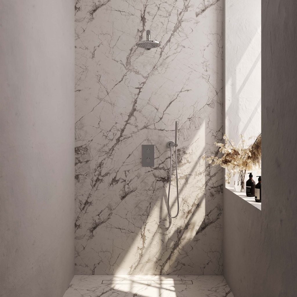 BRAUER Chrome Edition thermostatische inbouw regendouche 3-weg omstelling SET 25 met 20 cm douchekop en rechte muurarm en staaf handdouche en doucheslang en wandaansluitbocht chroom