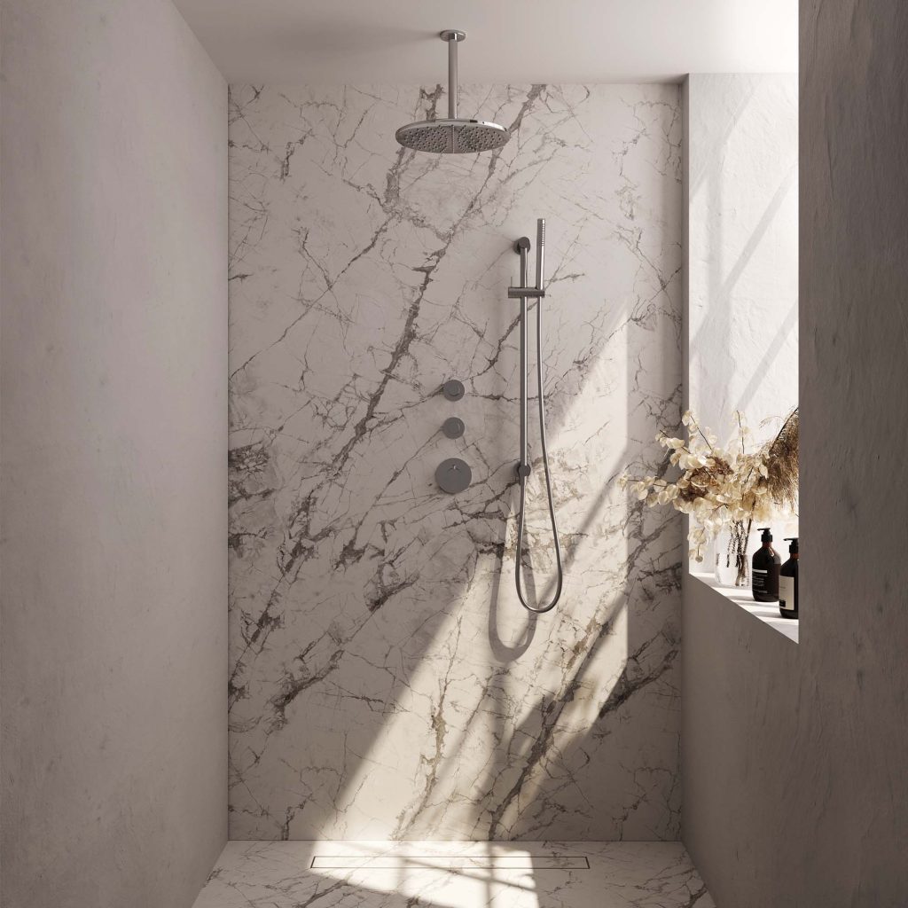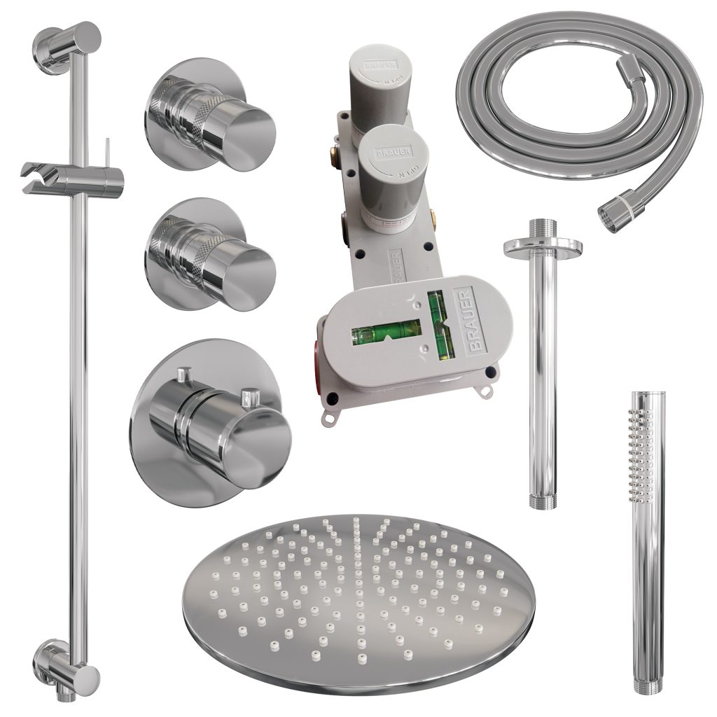 BRAUER Chrome Edition thermostatische inbouw regendouche SET 18 met 30 cm douchekop en plafondarm en staaf handdouche en doucheslang en geïntegreerde glijstang chroom