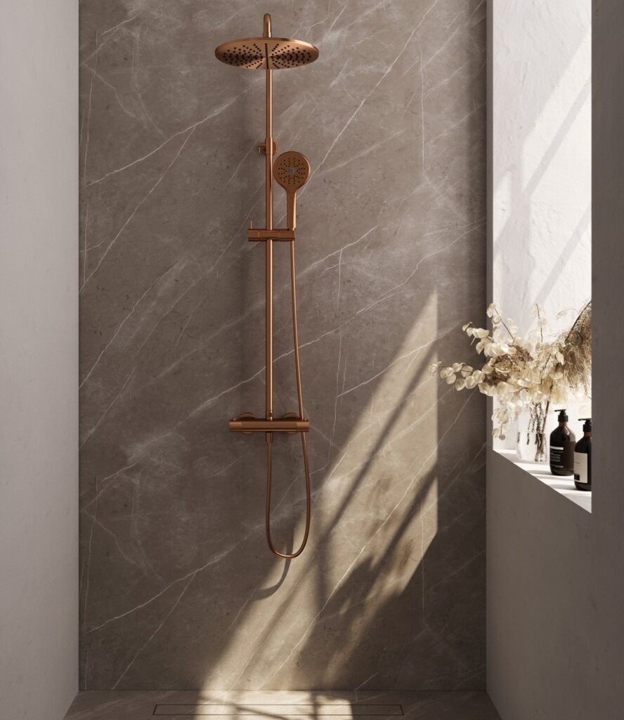 BRAUER Copper Carving opbouw thermostatische regendouche SET 04 met 30 cm douchekop en 3-standen handdouche en doucheslang koper geborsteld PVD