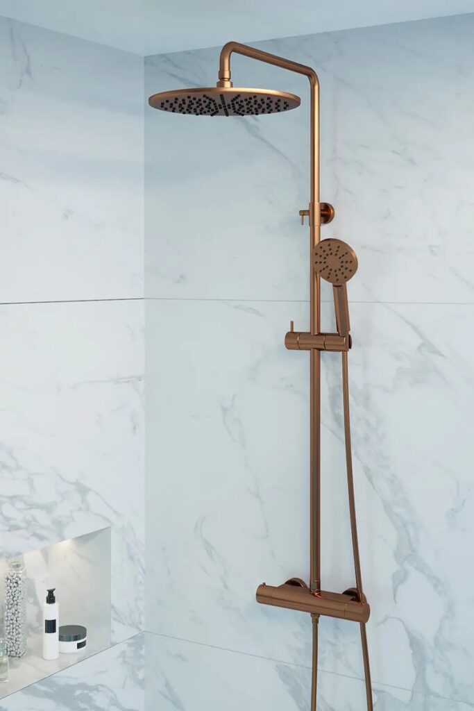 BRAUER Copper Edition opbouw thermostatische regendouche SET 04 met 30 cm douchekop en 3-standen handdouche en doucheslang koper geborsteld PVD