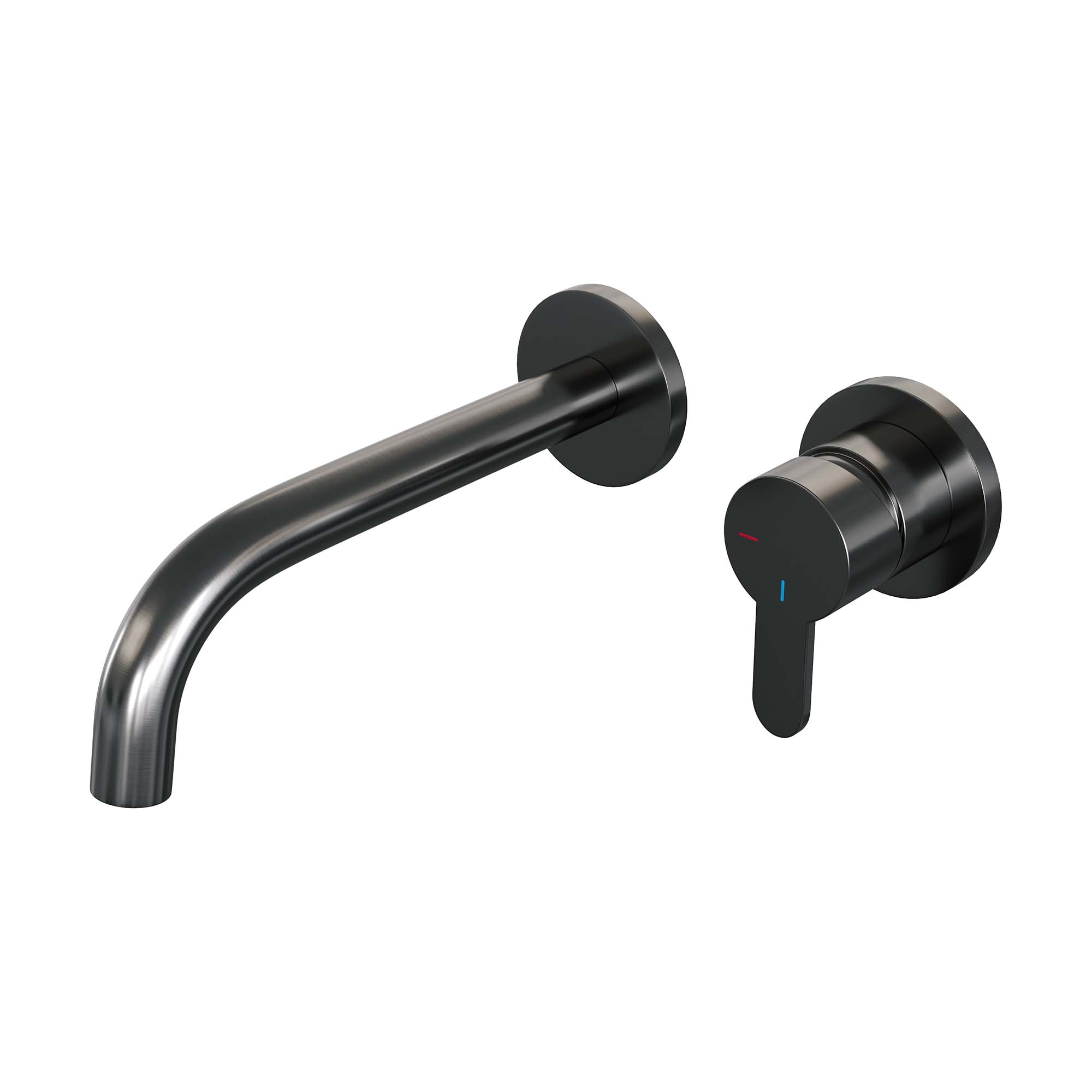 BRAUER Gunmetal Edition inbouw wastafelmengkraan met gebogen uitloop en rozetten model D1 gunmetal geborsteld PVD
