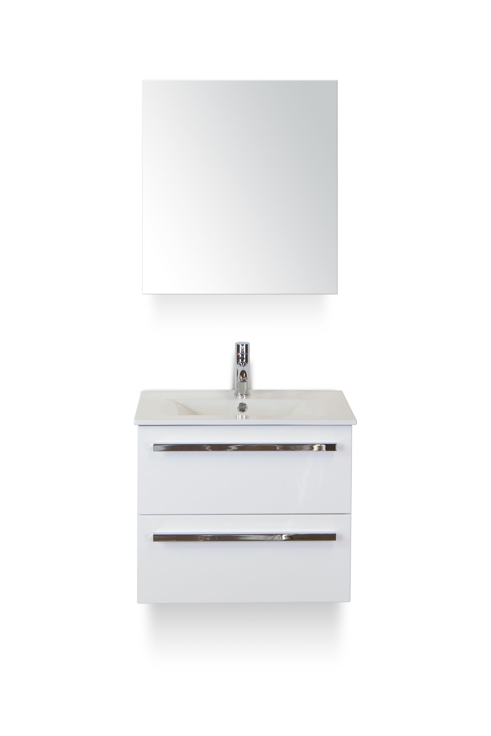 badmeubelset 60 cm breed - bestaande uit: wastafelkast 2 laden wit hoogglans, keramische wastafel Enjoy en spiegelkast