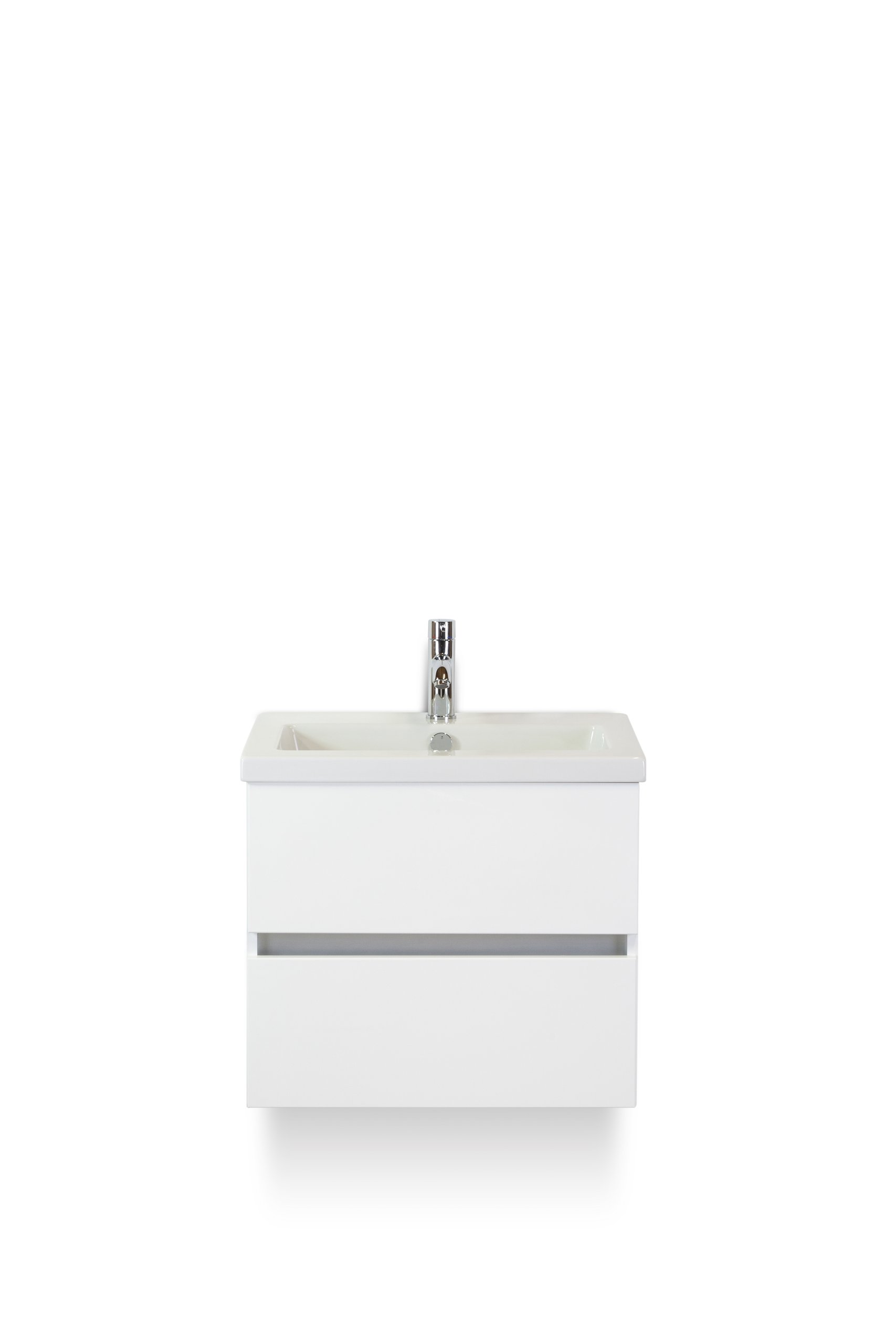 badmeubelset 60 cm breed - bestaande uit: wastafelkast 2 laden greeploos wit hoogglans en keramische wastafel Djazz