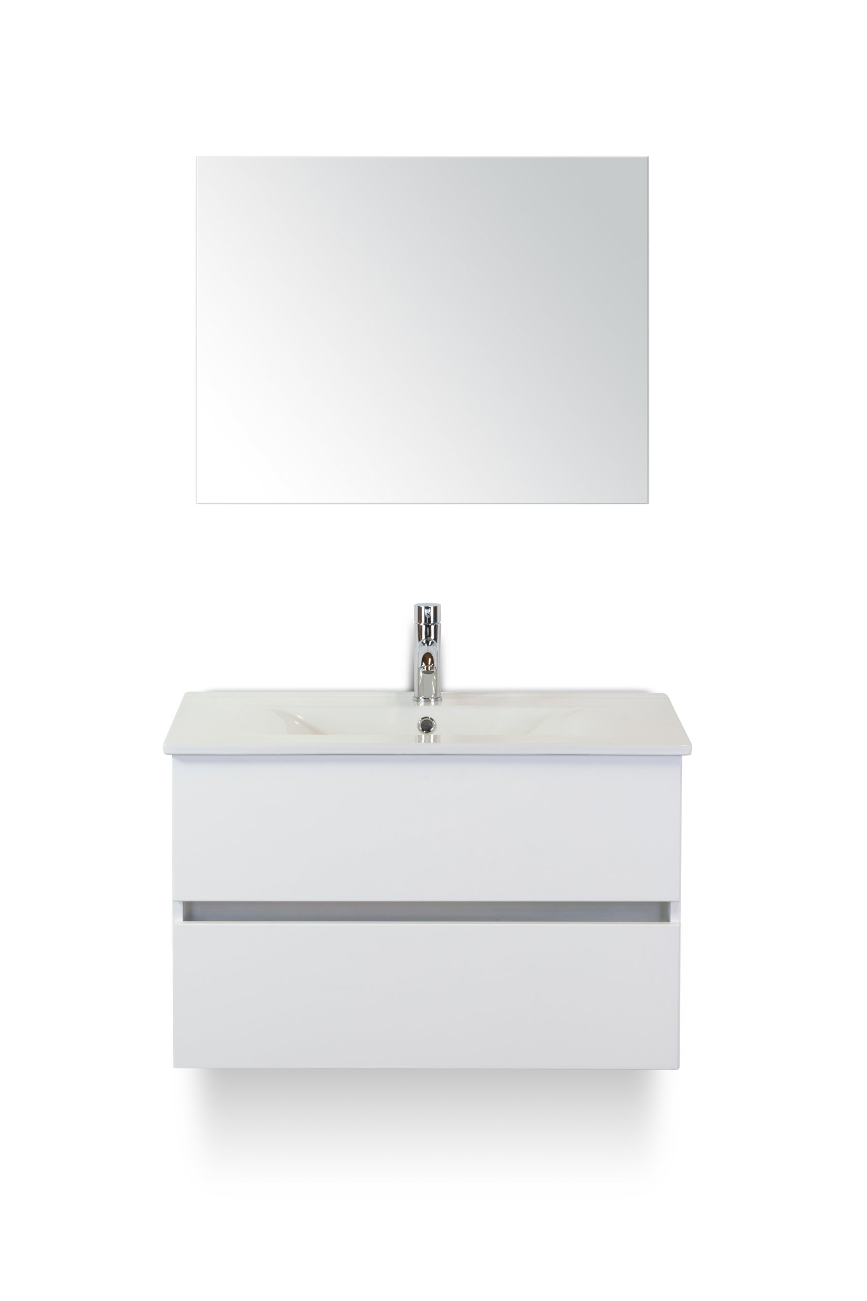 badmeubelset 80 cm breed - bestaande uit: wastafelkast 2 laden greeploos wit hoogglans, keramische wastafel Enjoy en spiegel