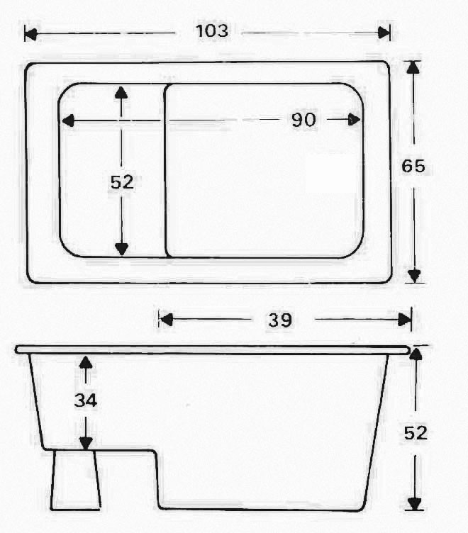 Zitbad van hoogwaardig onbreekbaar kunststof: Polypropyleen