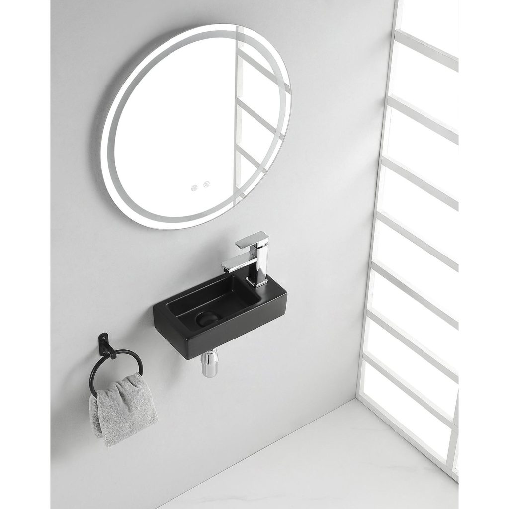 Deze keramische Rhea XS fontein van Wiesbaden Sanitair is super compact en neemt weinig ruimte in beslag. De fontein is gemakkelijk schoon te houden en door zijn afmeting is hij in bijna iedere toiletruimte te plaatsen. Dit fonteintje heeft een mat zwarte kleur. Dat maakt het een echte eyecatcher. In combinatie met andere mat zwarte elementen van Wiesbaden Sanitair creëer je een moderne eenheid in de toiletruimte of badkamer.