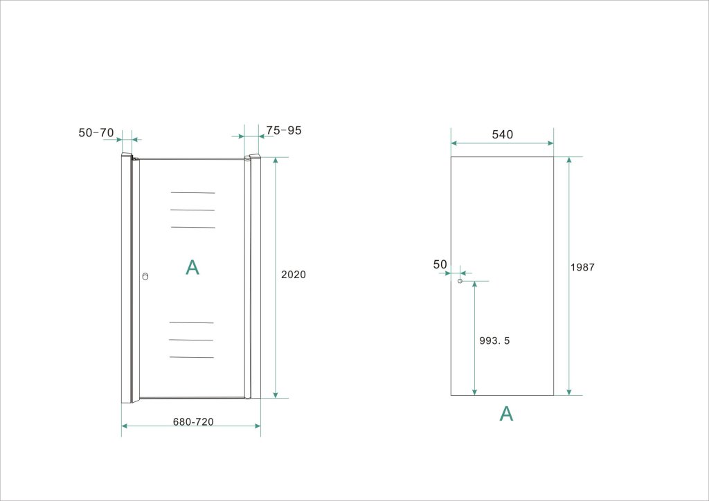 LET OP: Zodra je deze nisdeur combineert met een zijwand komt het aanslagprofiel van 50 tot 70 mm te vervallen.
