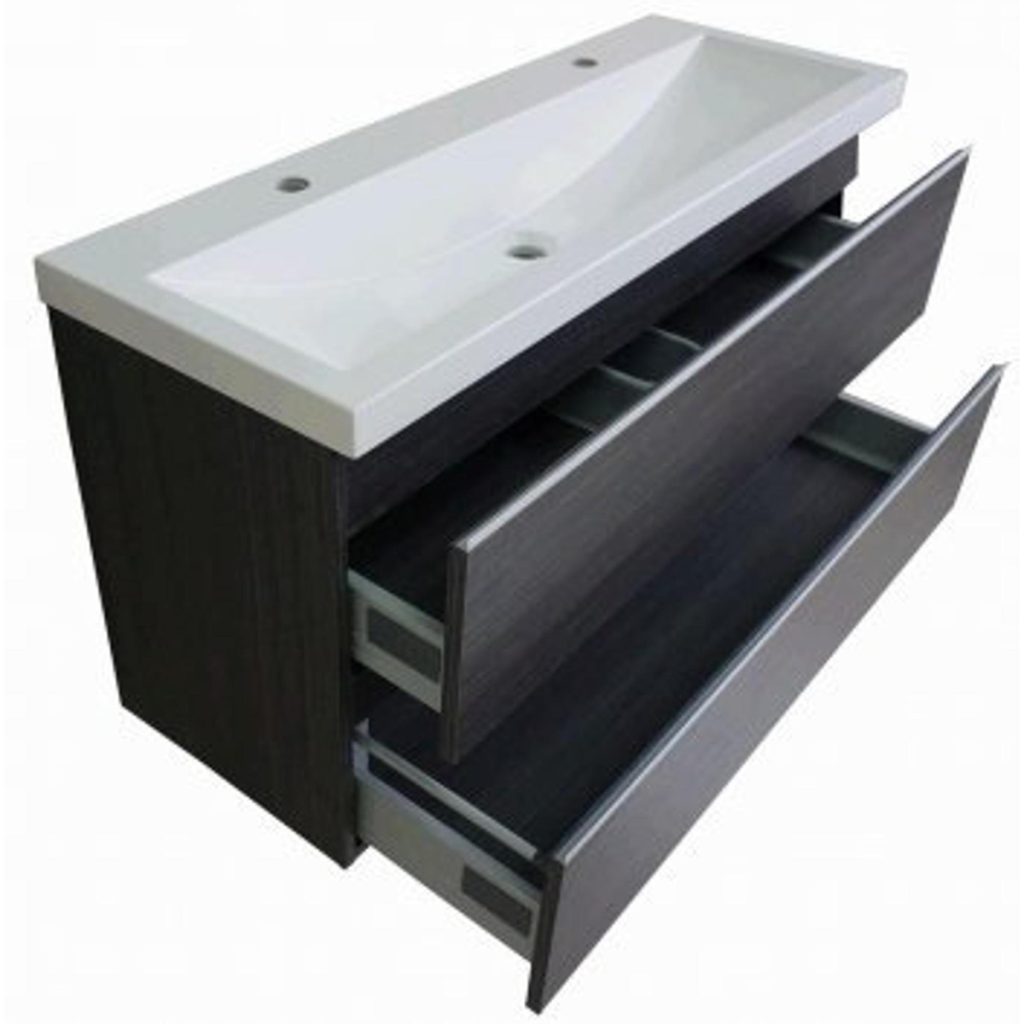 In deze houtnerf grijze Shall onderkast van Wiesbaden Sanitair kun je eventueel een wastafel met twee kraangaten plaatsen. Daarnaast is het dé oplossing voor de kleinere badkamer. Door de diepte van slechts 36 cm (normaal is dit 46 cm) houd je meer ruimte over. Deze onderkast is uitgerust met twee lades die voorzien zijn van een Soft-Close systeem. Dit zorgt ervoor dat de lades altijd rustig sluiten.