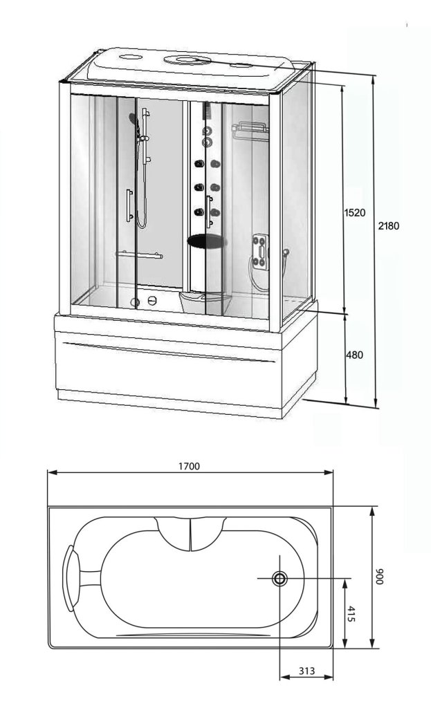 Deze bad-douche combinatie is gemaakt van 5 mm dik veiligheidsglas, bevat aluminium zilveren profielen en heeft sfeervolle zwarte glazen achterpanelen. Het bad bevat een voorpaneel.