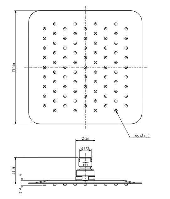 Luxe rvs hoofddouche vierkant 200mmx2mm chroom. Met Anti-kalk functie en kantelbaar scharnieraansluiting.