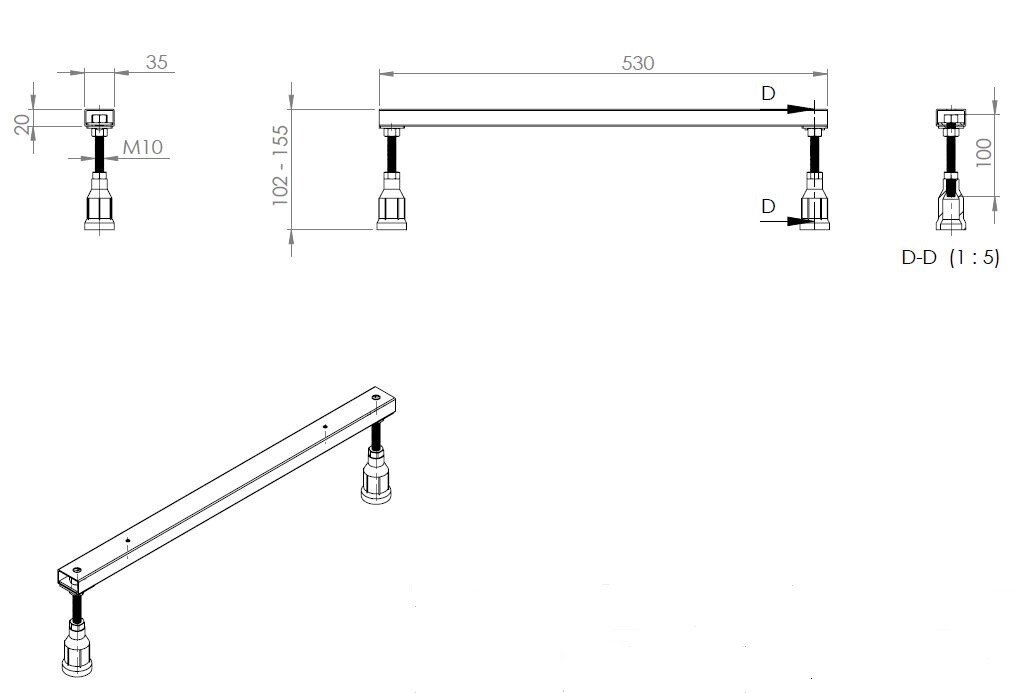 De pootjes zijn verstelbaar van minimaal 10 cm naar maximaal 15 cm.