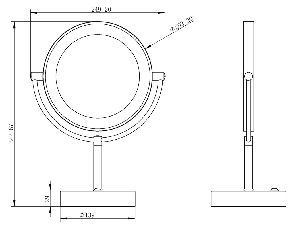 Rondom de gehele spiegel zit een LED lichtbalk (4000K) geïntegreerd. 4000K is een helder witte kleur die vergelijkbaar is met daglicht en dus uitermate geschikt voor de badkamer. Met de schakelaar schakel je gemakkelijk de LED verlichting in of uit. De spiegel werkt op batterijen (niet meegeleverd). Hierdoor kun je de spiegel overal in huis gebruiken.