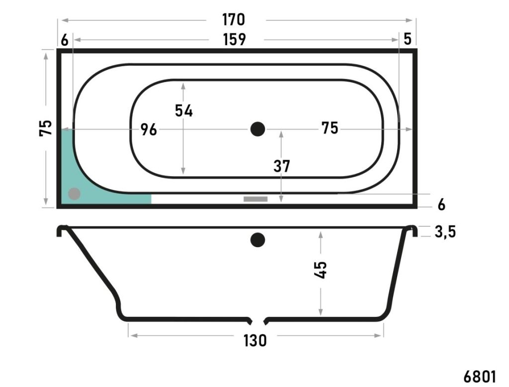 Inbouwbad Xenz Aruba 170x75x45 cm, Met badpoten.
