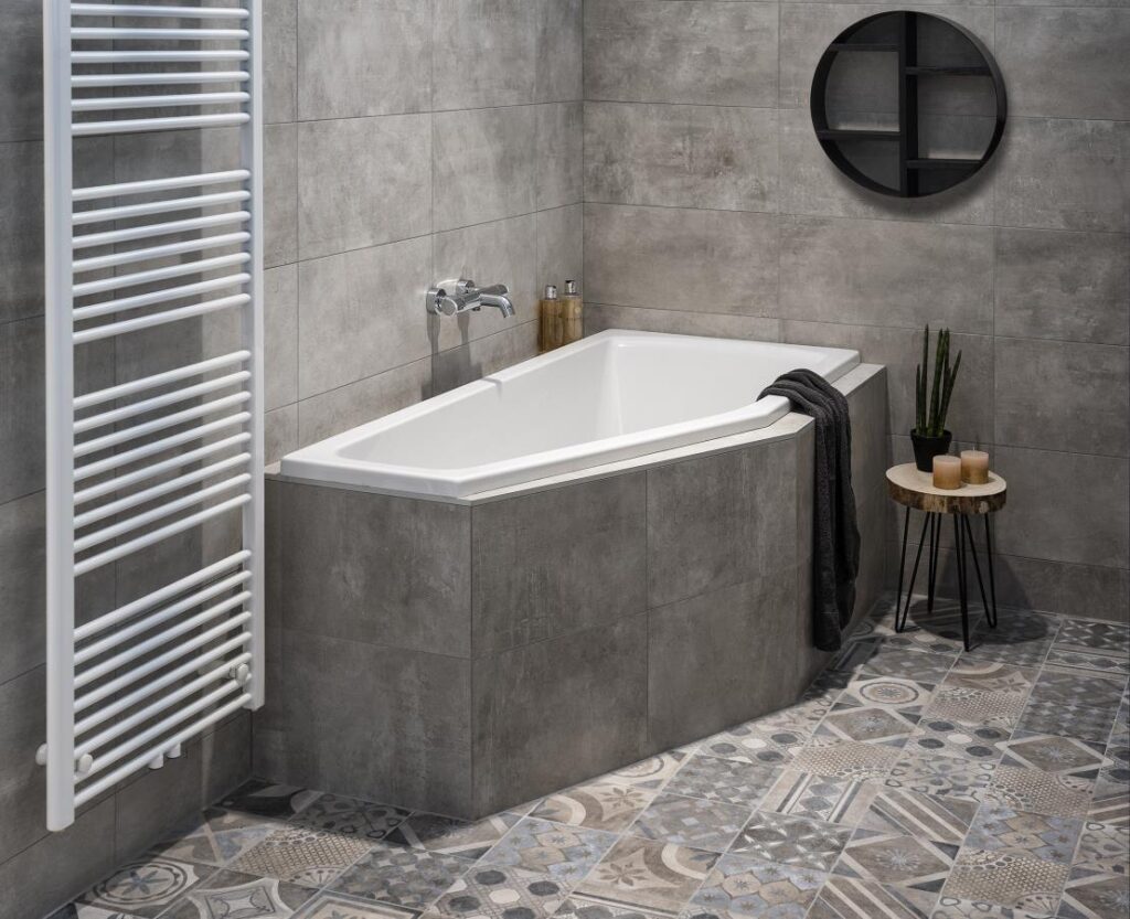 Dit bad is gemaakt van acryl. Hierdoor is het makkelijk schoon te houden en wordt warmte langer vastgehouden.